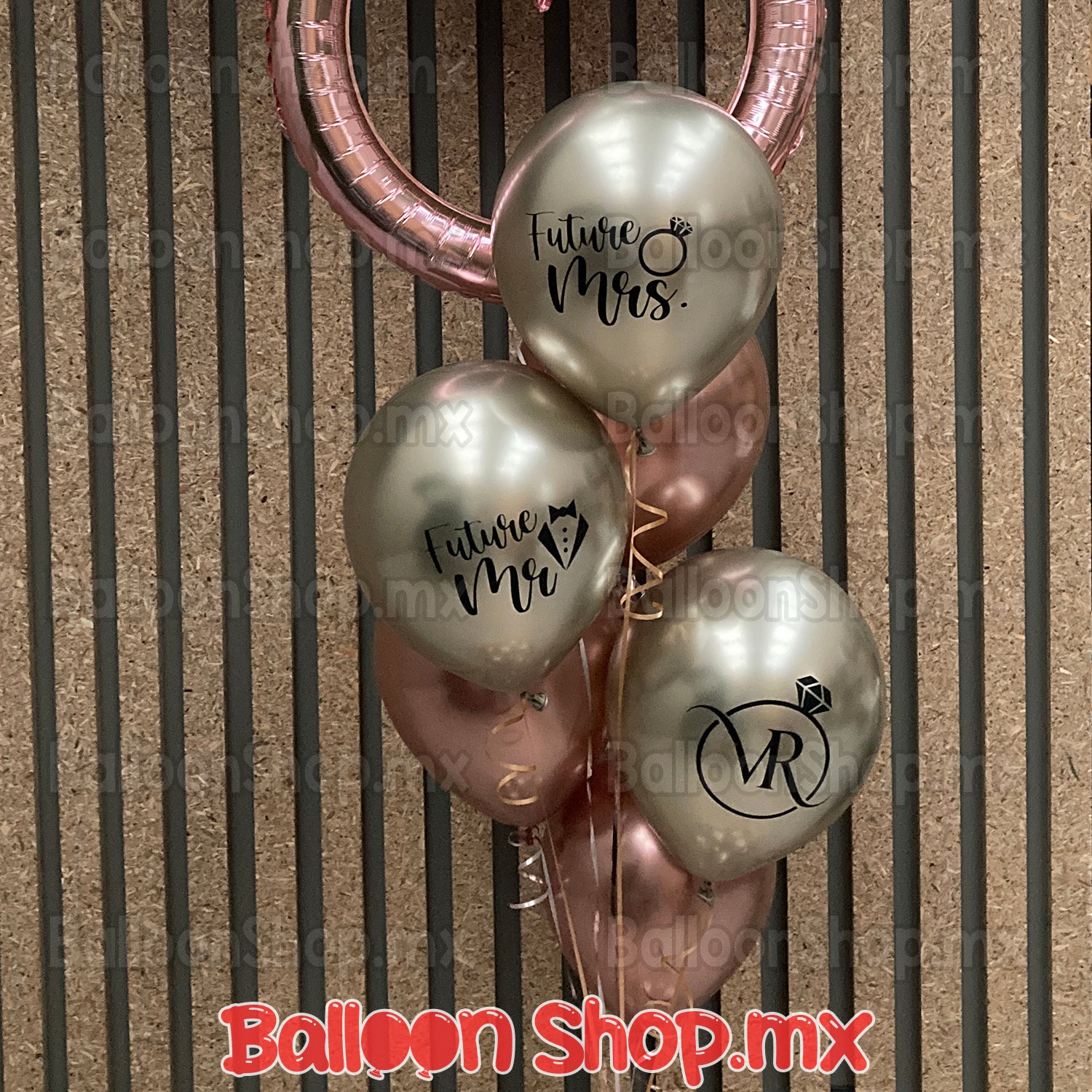 Globo en acabado cromado de color champagne, mide 25 cm de diámetro en la zona más ancha.